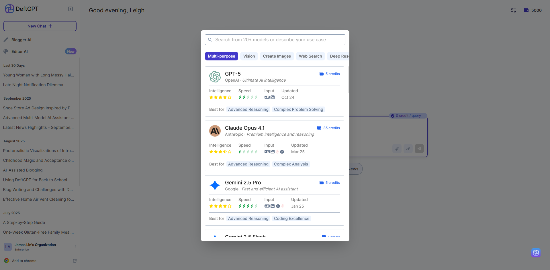 Multi-Model Access: Use GPT-3.5, GPT-4, GPT-5, Claude, Gemini, and more.